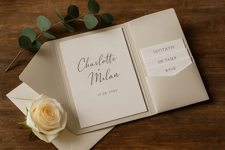 Ik weet nog hoe ik voor het eerst een pocketfold trouwkaart in handen had; het voelde meteen als iets speciaals. Wat deze kaarten zo uniek maakt, is de slimme vouwstructuur. Ze hebben een soort ingebouwd mapje waarin je extra kaartjes kunt stoppen, zoals een routebeschrijving of een programma. Daarnaast stralen ze pure luxe uit, perfect om je bruiloft direct die chique vibe te geven. Of je nu gaat voor klassiek of modern, met onze pocketfold trouwkaarten zet je de toon voor een onvergetelijke dag. Het is echt die eerste indruk die telt, en hiermee zit je altijd goed!